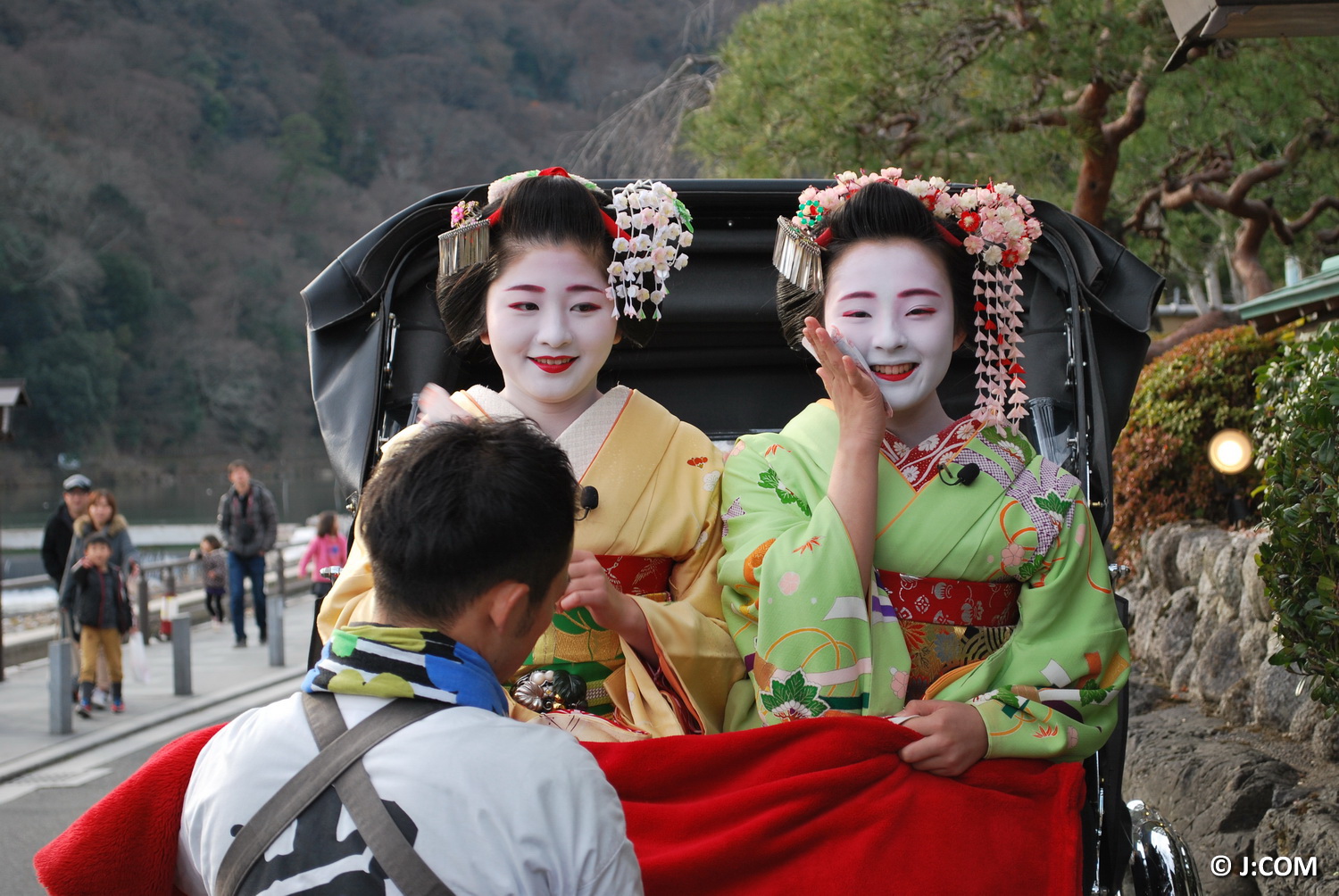 Tout d’abord, une petite explication de texte s’impose : ce que l’on regroupe sous le terme de geisha porte des noms plus spécifiques à Kyoto. En effet, une geiko est le terme utilisé dans l’ouest du Japon (Kyoto inclus donc) et maiko désigne une geiko apprentie. En japonais, geisha s’écrit 芸者 dont les kanjis signifient respectivement art (gei) et personne (sha); geiko est 芸妓 (le ko signifiant enfant) et maiko 舞妓 (mai voulant dire danse).